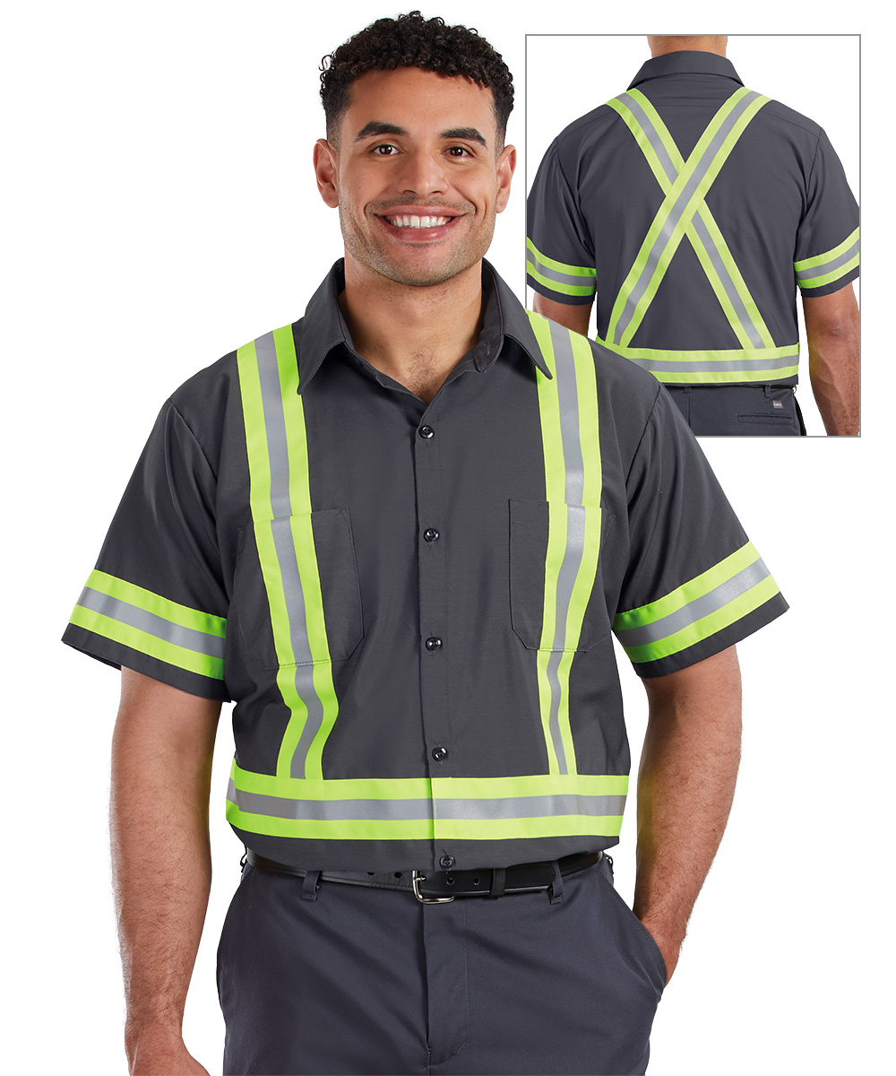 Designed with 2.25" yellow/silver/yellow reflective striping, these work shirts ensure